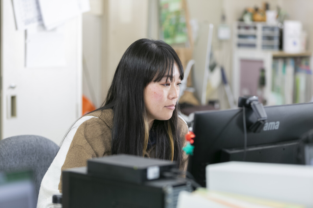 櫛池農業振興会での勤務中の一コマ。「当たり前ですが畑仕事だけが農業じゃないですよね。それが最初は新鮮に感じたし、オフィスワークもあるなら自分のキャリアが活かせるかなと思いました(髙木さん)」